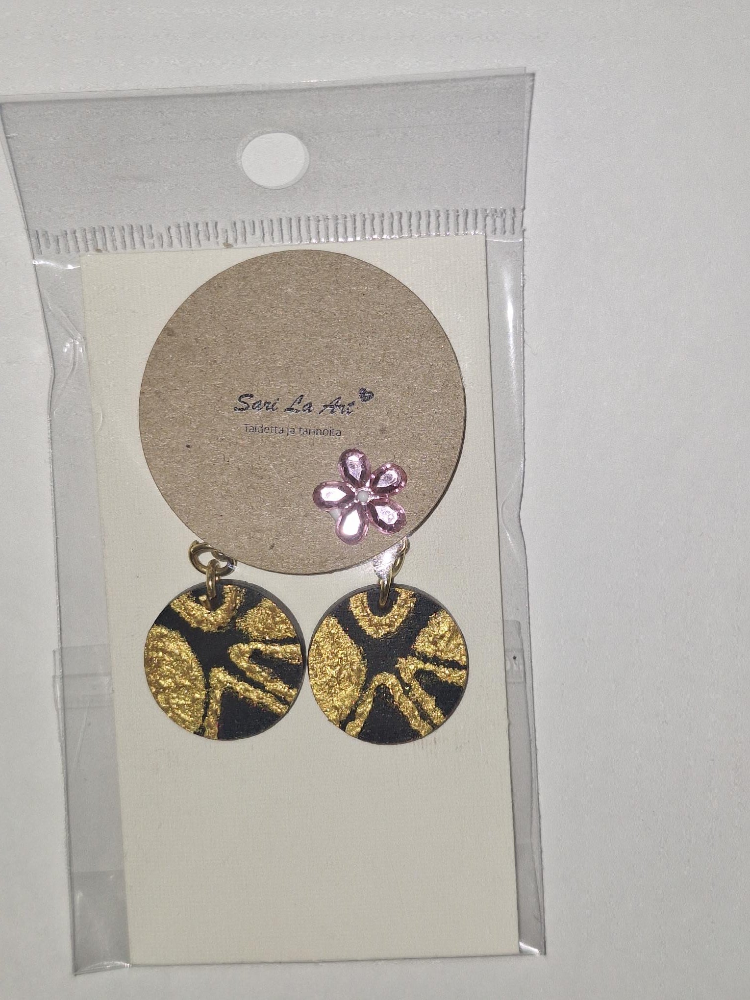 Kauniit mustat Maureen-malliston korvakorut ovat sinulle, joka arvostat ajatonta ylellisyyttä ja hienovaraista näyttävyyttä. Runsaan kullan sävyinen abstrakti kuvio heijastaa valoa kauniisti ja tekee koruista katseenvangitsijan niin arjessa kuin juhlassa.